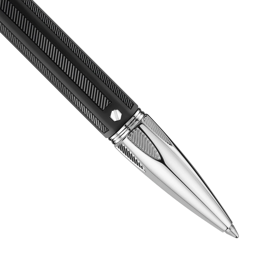 Varius Rubracer takes a material with a well defined character and reveals all the power of its personality. Its body of black rubber with guillochage decoration gives the new instrument an imposing elegance that is perfectly in tune with contemporary city life. And its strong profile is accentuated by the striking visual and tactile contrast of the materials: soft and matte for the rubber, polished and sparkling for the rhodium-coated silver trim. A screw adds a touch of vibrant modernity to the body of the pen. The sense of refinement extends to the cap with its delicate guillochage and its new jointed clip. In the fountain pen, the cap conceals a new, larger nib.