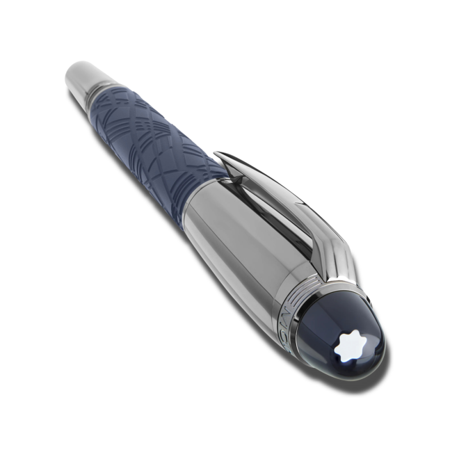 Starwalker SpaceBlue looks beyond planet earth and turns towards the stars and the galaxy. Utterly masculine and futuristic, this new StarWalker collection brings a new look for resin barrel, with a design that recalls the intricate structures of the Widmanstätten Pattern, one of nature’s most hypnotic creations. The metal cap and fittings are coated in dark ruthenium, accompanied by a deep space blue tone for the matte precious resin, recalling the hues of a starry sky. Also the subdome on the cap top, over which the Montblanc emblem floats, comes in a deep space blue colour.
