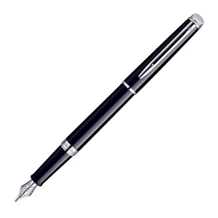This shiny black Waterman Hemisphere 10 fountain pen has an elegant Parisian style and a slim-line design that is perfect for those who need to take their pen with them. The Hemisphere is a discreet and practical pen which fits easily in the pocket, bag or diary and combines elegance and tradition with sleek fashion and refinement.Β
